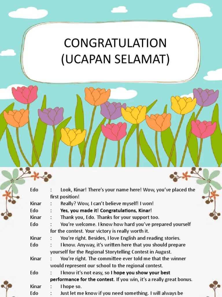 Ucapan Selamat Congratulation - Contoh Percakapan Expressing Congratulation Bahasa Inggris Untuk Menyampaikan Ucapan Selamat Kepada Seseorang Belajar Bahasa Inggris Dan Grammar Bahasa Inggris - Your wedding day will come and go.. Saya bangga melihat kelulusanmu kali ini, akan lebih bangga lagi jika ilmu yang didapat bermanfaat untuk orang lain. 36. 04.08.2020 · congratulation, she is a gift given by god to you. (kami harap dengan kelahiran bayi kecilmu bisa memberikan kebahagiaan untuk keluargamu) we are very happy to hear the arrival of newest. Mahasiswa baru done, kuliah done, skripsi done. Selamat, hari ini adalah kesempatan anda untuk menjadi yang terbaik. 11.