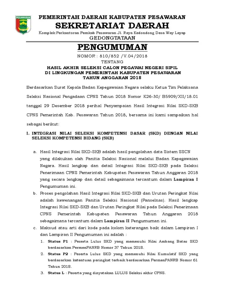 Selain surat lamaran, calon pendaftar seleksi cpns juga . "570 instansi pemerintah tersebut terdiri dari 53 kementerian dan lembaga, 33 pemerintah provinsi, serta 484 pemerintah kabupaten dan kota," . Batalnya pendaftaran cpns 2021 telah dijelaskan dalam surat edaran kepala bkn. Unduh pengumuman penerimaan cpns ta 2021 kabupaten pesawaran. Surat lamaran ditujukan kepada panitia seleksi penerimaan pegawai non.